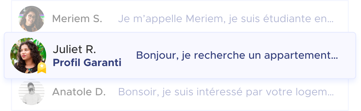 En France, 9 loueurs sur 10 demandent un dossier de location avec un garant . Sans garant, les locataires mettent jusqu'à 4 fois plus de temps pour obtenir des réponses seulement. C'est pour cela que nous avons créé le Profil Garanti.